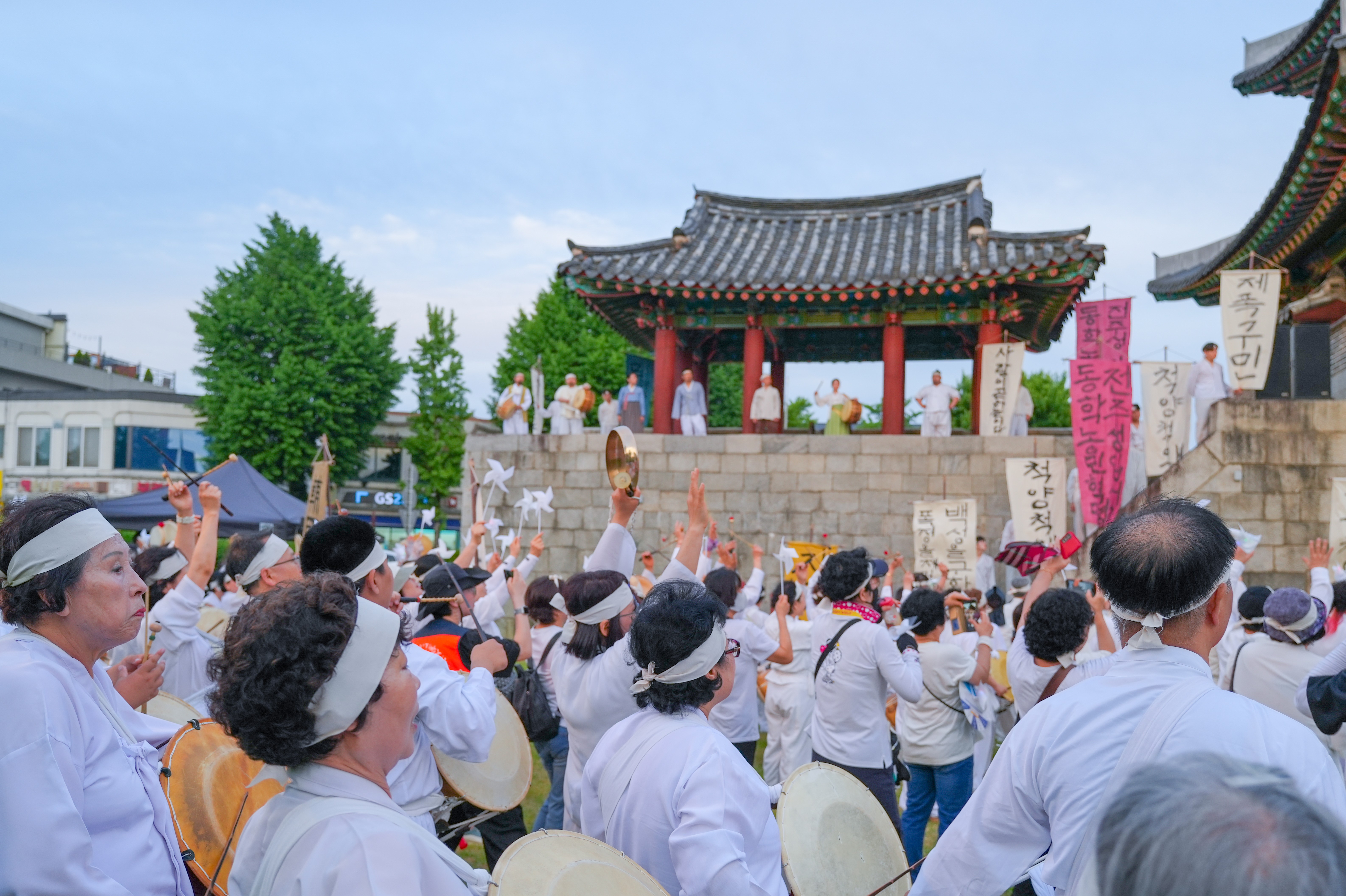 먼저 학술포럼은 ‘혁명의 문학과 영화’라는 주제로, 1894년 동학농민혁명이 문학과 드라마, 그림에서 어떻게 재해석되었는지를 살펴 보았다. 박구용(전남대학교 철학과 교수)의 기조강연 「2025년 우리에게 혁명이란 무엇인가」를 시작으로, 신경수(샤이닝 파크 대표_SBS 드라마 ‘녹두꽃(2019)’ 연출)의 「우금티가 되어 버린 남태령」, 김형수(신동엽문학관 관장 겸 시인)의 「신동엽의 『서사시 금강』과 동학농민혁명」, 원도연(원광대학교 교수)의 「박태원의 『갑오농민전쟁』과 전주」 발표가 이어졌다.