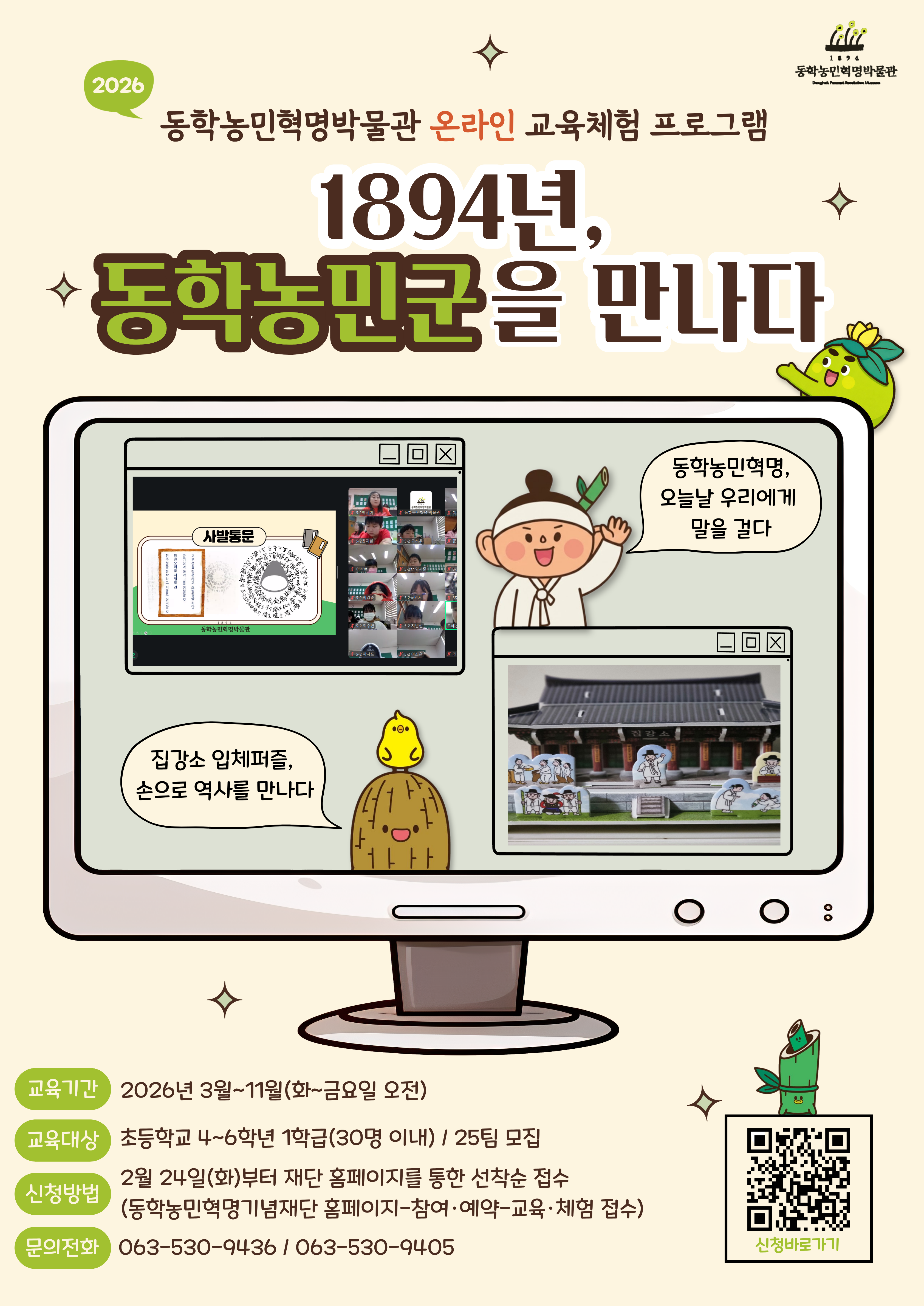 56149 전북특별자치도 정읍시 덕천면 동학로 742 TEL. 063-530-9400 FAX. 063-538-2893 E-mail. 1894@1894.or.kr