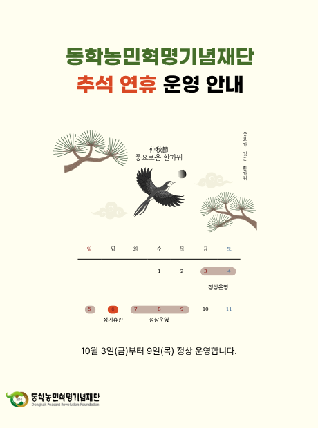 동학농민혁명기념재단 ㅣ 사업자정보확인 404-82-08587 ㅣ 통신판매업신고 2023-전북정읍-0046호