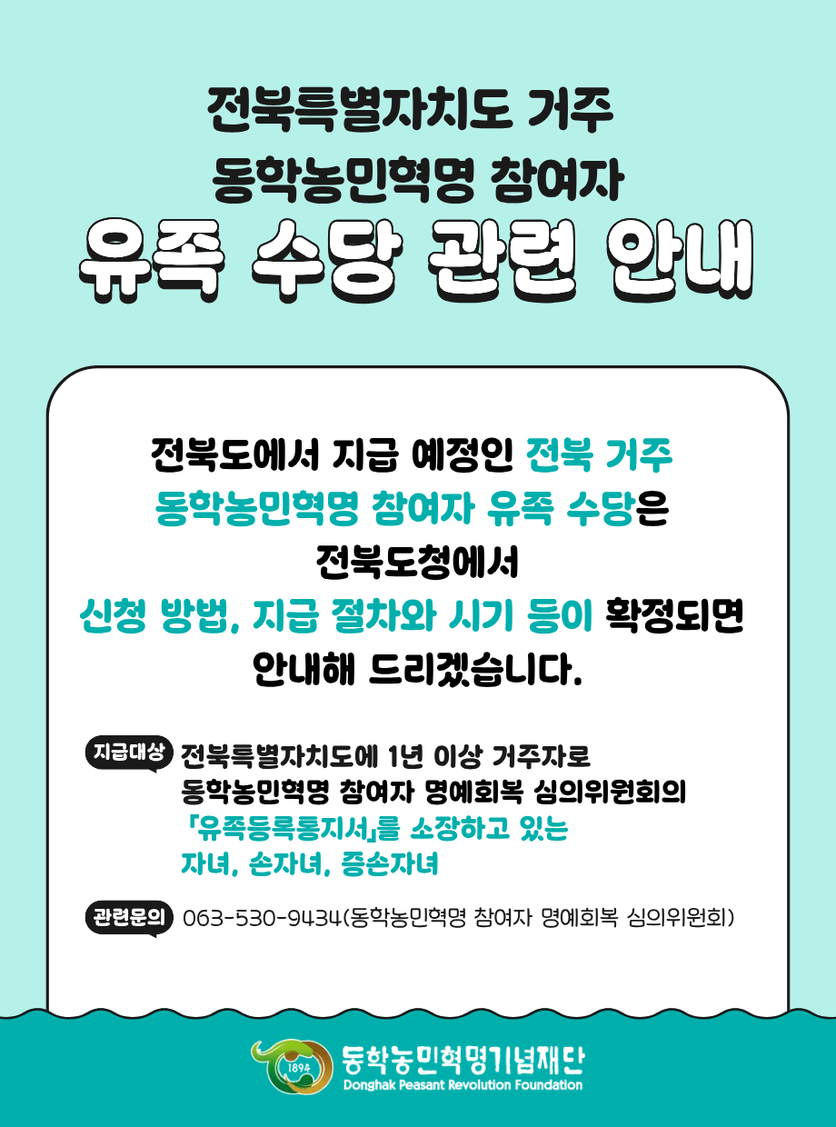 동학농민혁명 참여자의 유족 수당 지급 안내 공지