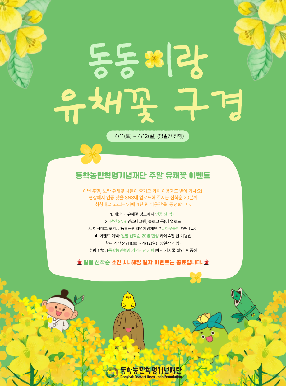 [이벤트] 동동이랑 함께하는 유채꽃 구경! ‘노란 물결’ 인증샷 이벤트 안내 공지