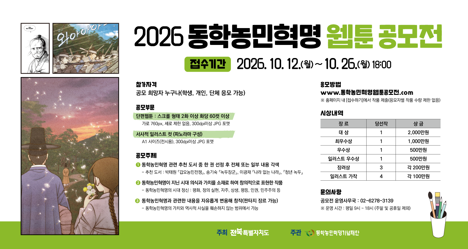 2026 동학농민혁명 웹툰 공모전 바로가기 ▶http://www.동학농민혁명웹툰공모전.com