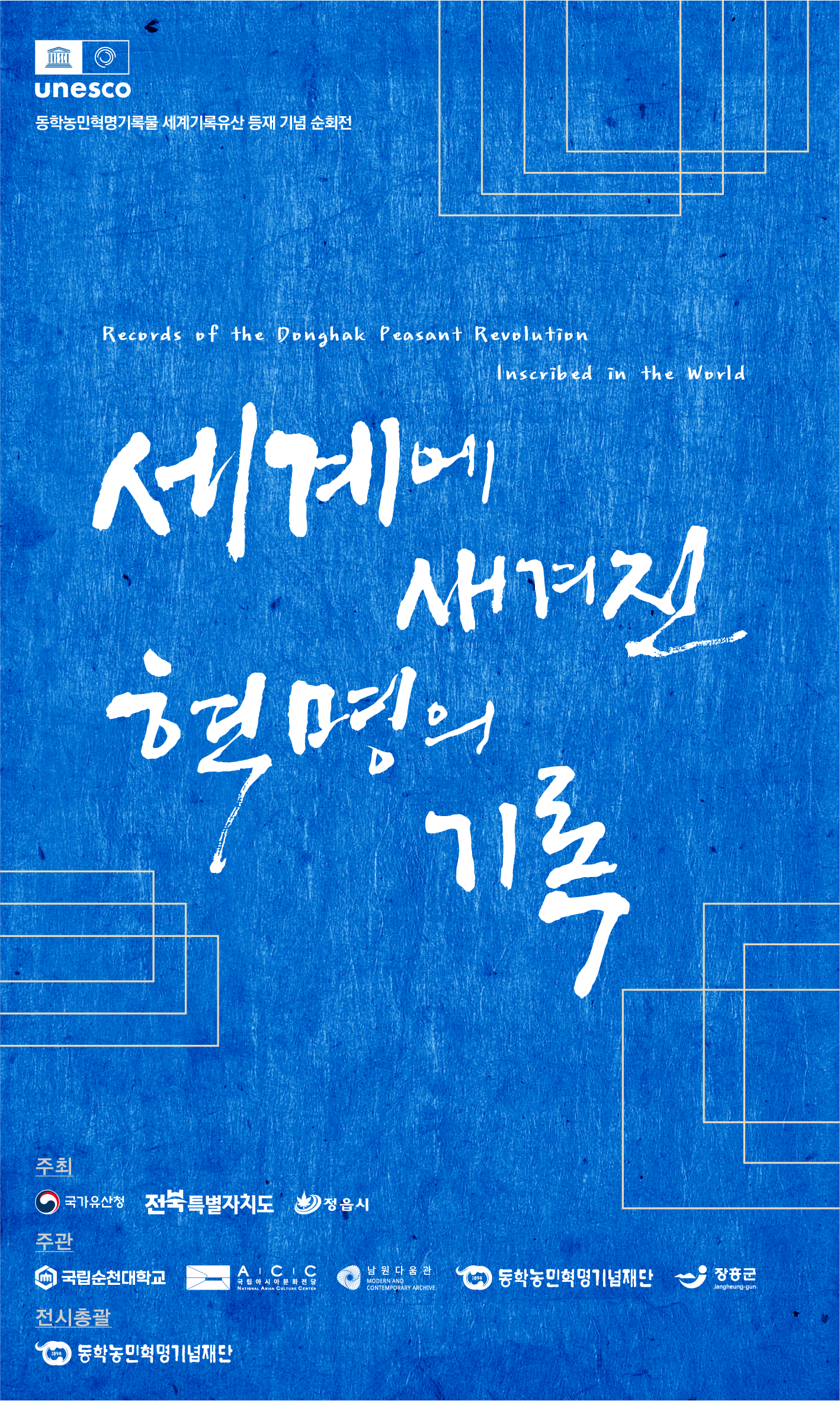 이에 동학농민혁명기념재단에서는 지역을 넘어 동학농민혁명기록물에 내포된 인류 보편적 가치를 공유하고, 동학농민혁명의 세계사적 의의에 대해 이해할 수 있도록 순회전시를 기획했다. 장흥동학농민혁명기념관(8월 18일 ~ 30일)을 시작으로 국립아시아문화전당(9월 3일 ~ 13일), 국립순천대학교박물관(9월 16일 ~ 26일), 남원다움관(10월 1일 ~ 12일)까지 전라권 4개 기관에서 운영한다.