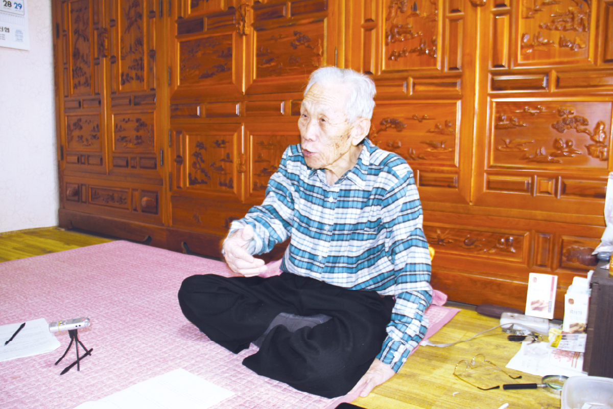 답) 예전에 집안에 궤짝이 하나 있었어요. 그 궤짝에 서책이 가득 차 있었는데, 옛날 시나 어떤 일에 대한 내력을 쓴 것들로 보였어요. 그런데 제가 젊었을 때 서울로 올라가 건축 관련 일을 업으로 삼다보니 이사를 자주 다녔어요. 그 과정에서 안식구가 간수하기도 곤란하고, 이사 다닐 때마다 짐스러워 힘이 든다고 홀랑 불태워버렸어요. 그걸 지금도 굉장히 후회하고 있어요. 안식구도 그 일 때문에 지금도 많이 속상해하고 그래요.