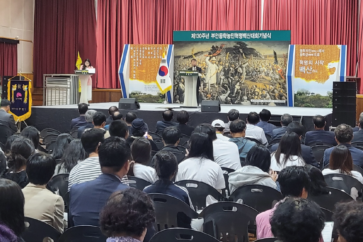 지난 5월 1일 전북 부안군 백산면에 있는 백산성 일원에서 제130주년 부안 동학농민혁명 백산대회 기념행사가 열렸다. 부안군이 주최하고 부안동학농민혁명기념사업회(회장 배의명)가 주관한 이날 행사는 백산봉기 기념탑 헌화를 시작으로 동학농민군 행군 재연, 식전 공연, 기념식, 식후 공연 순으로 진행되었다. 이날 행사에는 권익현 부안군수, 김광수 부안군의회 의장, 신순철 동학농민혁명기념재단 이사장, 이원택 국회의원, 기념단체 관계자, 부안 군민 등 300여 명이 참석하였다.