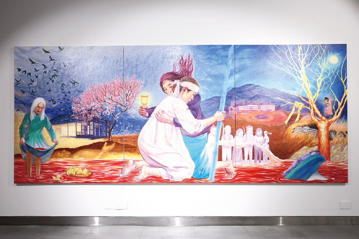 홍성담, 시천주조화정(侍天主造化定), 캔버스에 아크릴(910×270㎝), 2020