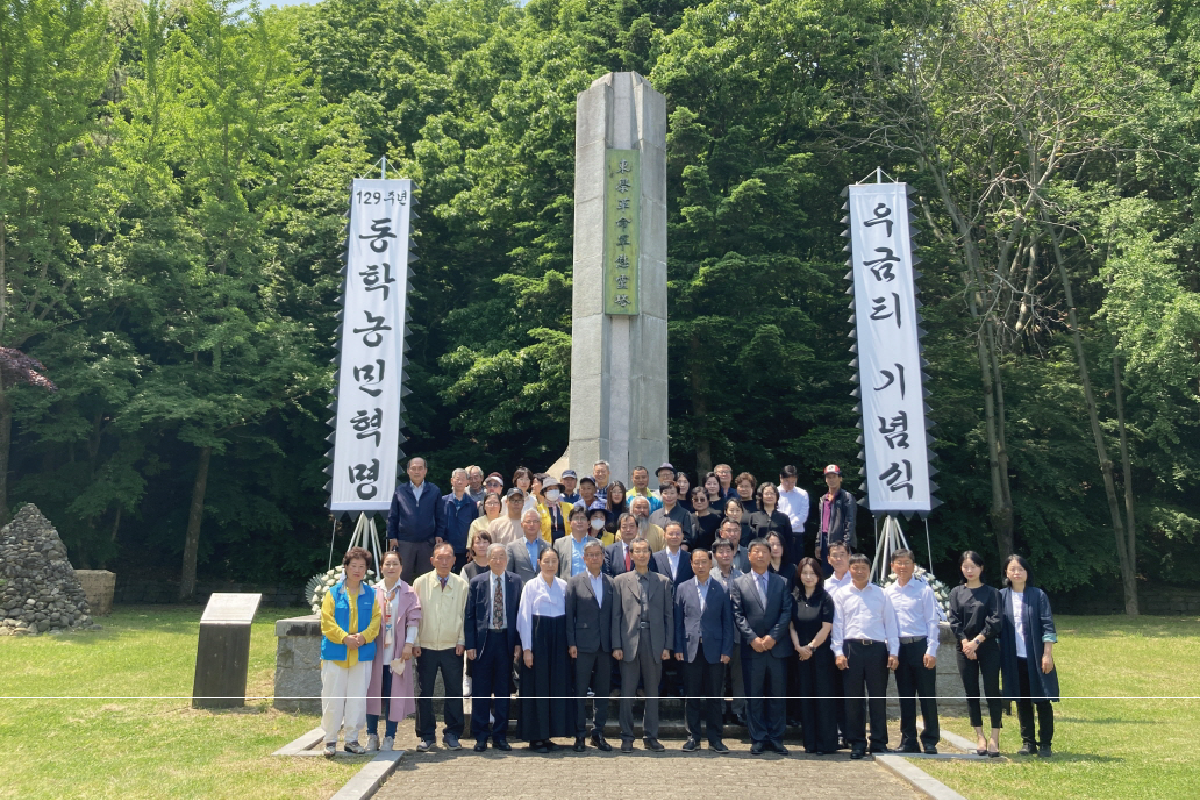 지난 5월 11일 충남 공주시 우금티전적지에서 공주시 주최, (사)동학농민전쟁우금티기념사업회 주관으로 제129주년 동학농민혁명기념식이 열렸다. 국민의례를 시작으로 길놀이, 추모 시 낭송, 동학농민혁명의 노래 제창, 헌화 순으로 진행된 이날 행사에는 동학농민혁명 참여자 유족을 비롯하여 많은 시민들이 참여하여 동학농민혁명의 역사적 의미를 생각하면서 갑오선열의 숭고한 정신을 기렸다.