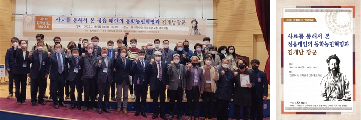 지난 3월 18일 정읍시 주최로 국회의원회관 대회의실에서 제1회 김개남장군 학술대회가 열렸다. ‘사료를 통해서 본 정읍 태인의 동학농민혁명과 김개남 장군’이라는 주제로 윤준병국회의원실, 김개남과 상두산회, 원광대 원불교사상연구원이 공동으로 주관한 이번 학술대회는 「동학농민혁명과 김개남」이라는 주제의 기조강연(박맹수 원광대총장)을 시작으로 제1주제 「김개남의 태인기포와 태인지역 동학농민혁명」(김봉곤: 원광대학교), 제2주제 「일본군 측 사료로 조명한 김개남 동학농민군의 항일전쟁」(이노우에 가츠오: 일본 훗카이도대학교), 제3주제 「호남의 동학과 개벽의 꿈」(이선아: 전북대학교), 제4주제 「현지자료를 통해 본 태인동학농민군과 김개남」(최규상: 원광대학교), 제5주제「문학작품을 통해 본 태인동학농민혁명과 김개남」(이진우: 동학농민혁명계승사업회), 제6주제「태인 지금실 김개남고택지의 문화재적 가치」(이병규: 동학농민혁명기념재단 연구조사부장) 발표가 있었다. 토론에는 제1주제 성주현(전 숭실대 교수), 제2주제 조재곤(서강대 교수), 제3주제 김건우(전주대 교수), 제4주제 조광환(동학역사문화연구소), 제5주제 우수영(경북대 교수), 제6주제 정성미(원광대 교수) 등이 참여하였다.