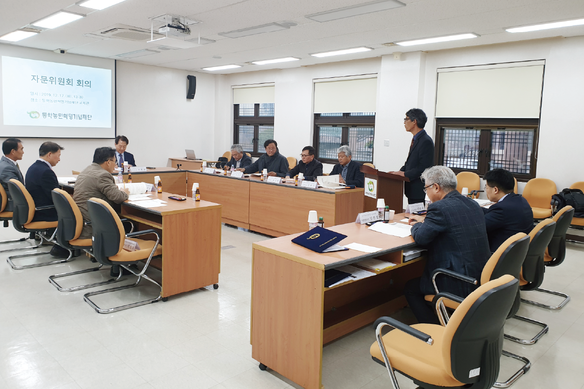 지난 2019년 12월 17일 동학농민혁명기념재단 자문위원회가 열렸다. 이날 회의에서는 2019년도 주요 업무 추진현황, 기념공원 조성사업 및 제126주년 동학농민혁명기념식 추진계획, 동학농민혁명 참여자 명예회복심의위원회 운영계획이 보고되었으며, 동학농민혁명 정신계승 및 발전을 위한 전반적인 사항과 관련 자료 수집·목록화, 참여자와 유족 및 유적지 발굴조사 등에 대한 심도 있는 자문이 이루어졌다.