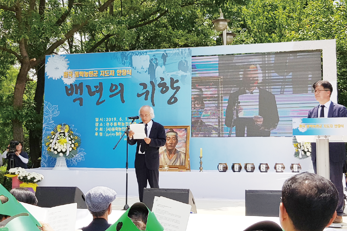 문) 얘기를 듣다보니 울분이 솟구치기도 하고, 동학농민혁명에 참여하셨다가 처형된 후 백골마저 다시 토벌을 자행했던 당사자인 일본으로 무단으로 반출되어 90년이 넘는 세월 동안 방치되어 있었다는 사실에 후손된 도리를 다하지 못하였다는 마음에 죄스럽기가 한이 없습니다. 우여곡절 끝에 지난 해 비로소 그분께서 영면하실 수 있도록 녹두관에 모시게 되어 얼마나 다행인지 모르겠습니다. 이 유골이 동학농민혁명 역사에서 갖는 역사적 의미를 여러 가지로 얘기할 수 있겠습니다만 특히 중요한 한 가지를 든다면 무엇일까요?