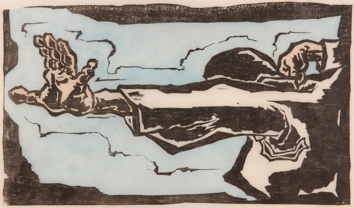 ⊙ 유연복, 갈라치며 나아가라, 목판채색, 1989, 부산민주항쟁기념사업회 소장