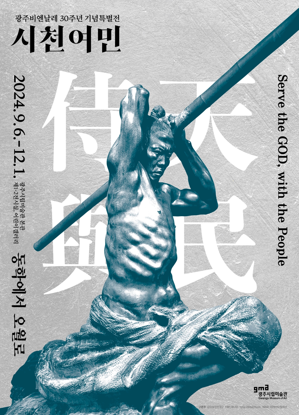 광주비엔날레 기간에 열리는 광주시립미술관 특별전 ‘시천여민-동학에서 오월로’는 올해 동학 주제 전시를 결산하는 전시가 될 것이다. 광주시립미술관 김준기 관장은 작년부터 전국의 큐레이터, 작가들과 동학 주제 답사를 다니며 올해의 주제 전시를 예감하였다. 3월부터 이어진 순회전시를 관장과 담당 큐레이터가 충실히 관찰하였다. 40여명의 작가가 참여하는 전시는 올해 열리는 주제 전시 가운데 가장 큰 규모를 가졌다. 일본 민중미술의 대표작가 도미야마 다에코를 비롯한 국외작가의 작품도 참여한다. 작가 홍성담은 앞선 순회전시에 걸린 9미터 세로 걸개그림 ‘시천주조화정(2002)’과 함께 오월의 정신을 구현한 2024년 신작을 함께 건다. 2폭의 세로 걸개그림이 동학에서 오월로 이어지는 이야기를 어떻게 들려줄지 몹시 설렌다. 우리 모두 그림틀을 타고 동학농민혁명의 언덕, 골짜기, 틈을 타고 노니세. 동학농민혁명의 들판과 우리 광장은 이어져 있다.