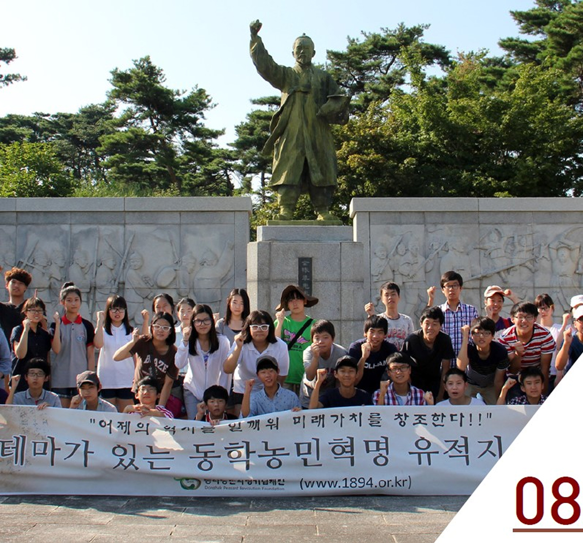 ‘어제의 역사를 일깨워 미래가치를 창조한다’는 슬로건 하에 시행중인 테마가 있는 동학농민혁명 유적지답사는 동학농민혁명의 역사적 가치와 정신을 이해하고 이를 통해 애국애족의 정신으로 함양시킴을 목적으로 하고 있다. 테마가 있는 동학농민혁명 유적지답사에는 동학농민혁명과 관련 유적지에 관심이 있는 초·중·고등학교 학생을 대상으로 진행 중이며, 지난 3/4 분기 간에는 군산중앙고등학교 등 7개 단체가 참여하였다. 4/4분기에는 4개 단체의 방문이 계획되어 있으며 5개 단체를 추가로 접수할 계획이다. (문의 : 063-538-2894)