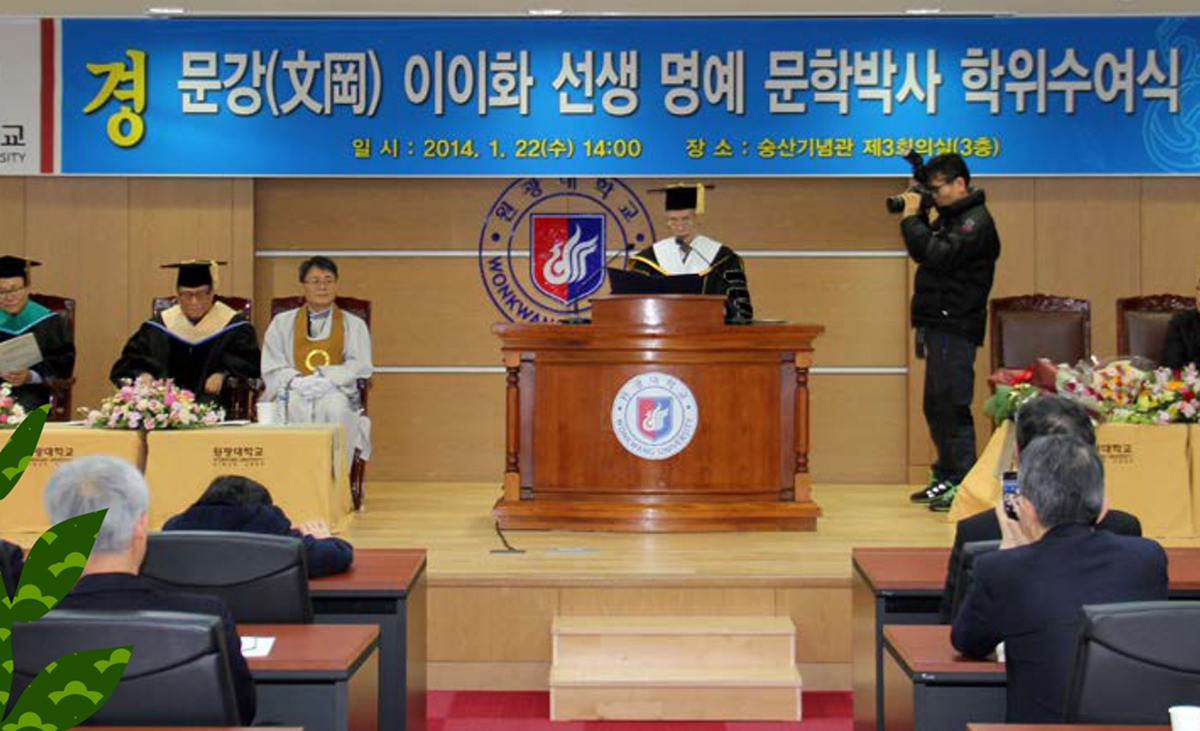 원광대학교(이사장 신순철)에서는 지난 1월 22일(수) 역사학자이자 전 기념재단 이사장 이이화 선생에게 명예문학박사학위를 수여했다. 이이화 선생은 평생 동학농민혁명을 비롯한 왜곡된 역사를 바로잡는데 헌신하였으며, 원광대학교에서는 이를 높이 사 그 업적을 기리기 위해 명예박사학위를 수여키로 결정하였다.