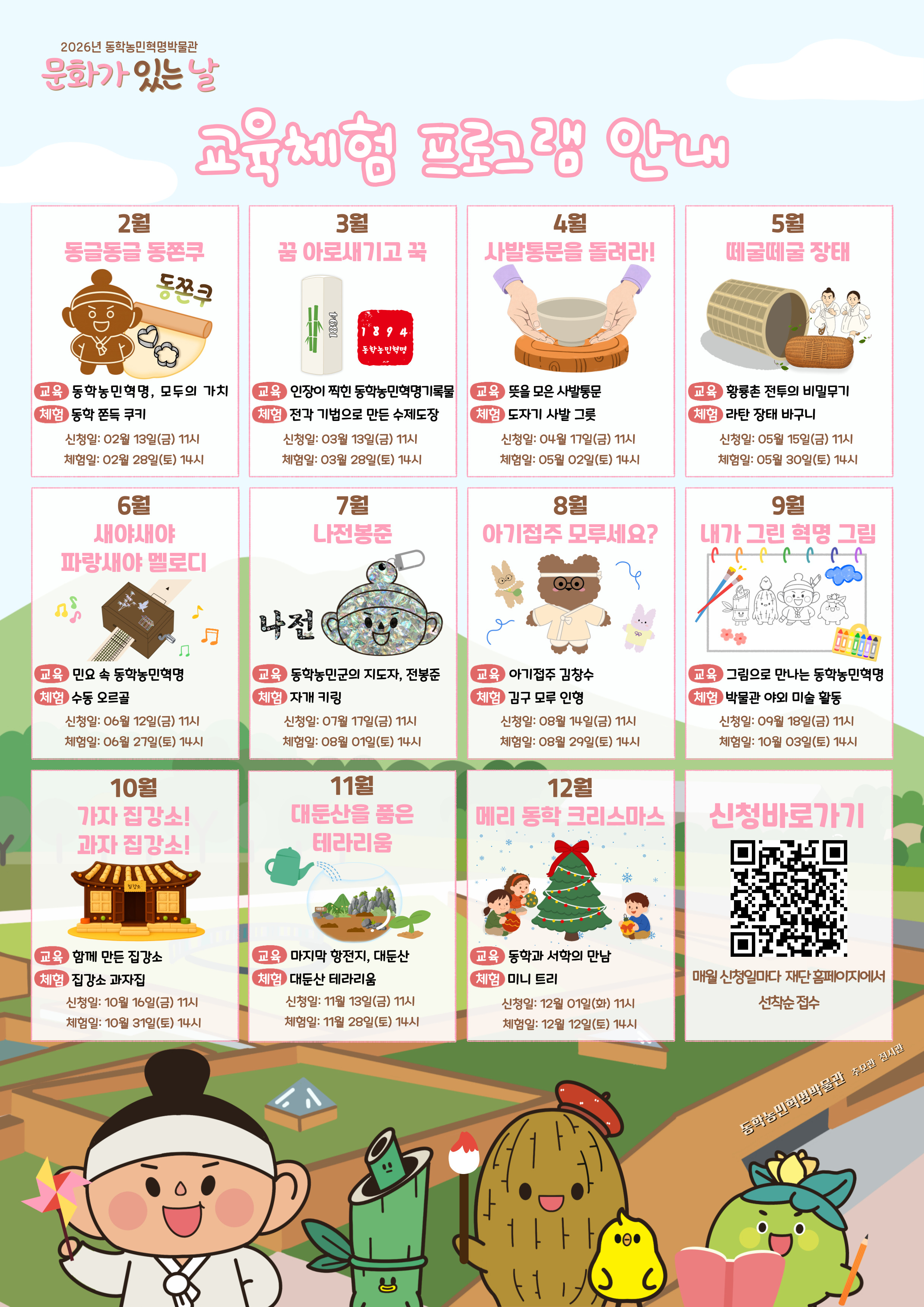 동학농민혁명기념재단(이사장 신순철)은 2월부터 매월 마지막 문화가 있는 날 주간 토요일에 ‘박물관 문화가 있는 날’프로그램을 연간 운영한다.