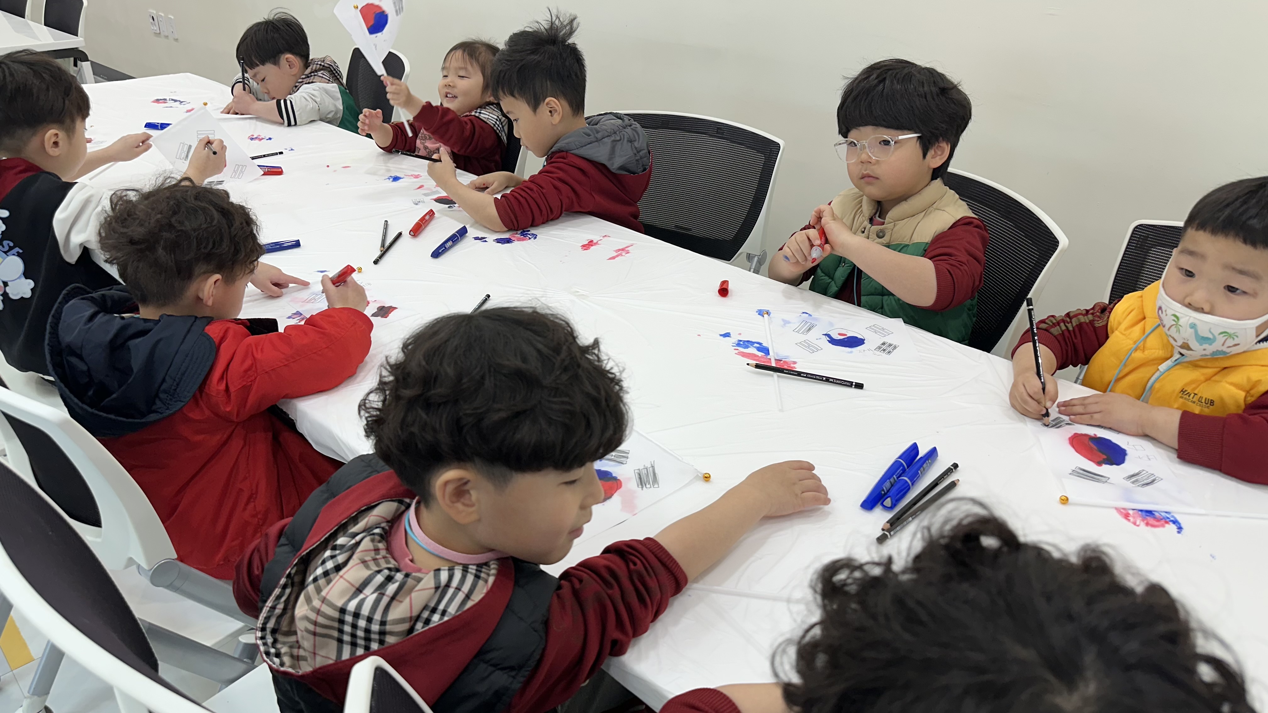 ▣ 교육내용: 좋아하는 동물과 자기소개 하기, 3.1절 영상 보기, 태극기 만들기, '대한민국만세'놀이, 무궁화꽃이피었습니다 등