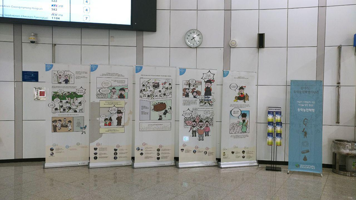 주요 내용은 ‘3.1운동으로 이어진 동학농민군의 함성‘이라는 주제로 동학농민혁명이 항일의병, 3.1운동으로 이어졌다는 사실을 담은 패널과 ’동학농민군의 이야기‘를 만화 형식으로 누구나 쉽게 이해할 수 있도록 구성하였다. 지난 6월~8월에는 전라북도교육청, 정읍역, 전주한옥마을 등을 찾아 전시를 하였다.