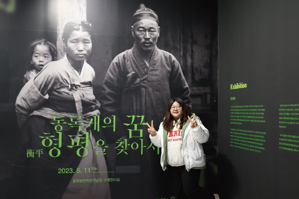 저는 어릴 때부터 역사에 관심이 많았지만 동학농민혁명은 잘 몰랐습니다. 지인의 추천으로 방학 기간에 동학농민혁명기념공원을 방문하고서야 동학농민혁명에 대해 조금 깊이 있게 알게 되었습니다. 드넓게 펼쳐진 공원에는 박물관, 추모관을 비롯하여 다양한 조형물들이 잘 조성되어 있었습니다. 큰 규모의 기념공원을 보면서 ‘여기에 우리가 기억하고 기념해야 할 뭔가가 있겠구나’라는 생각이 들었고 좀 더 알고 싶은 호기심이 생겼습니다.