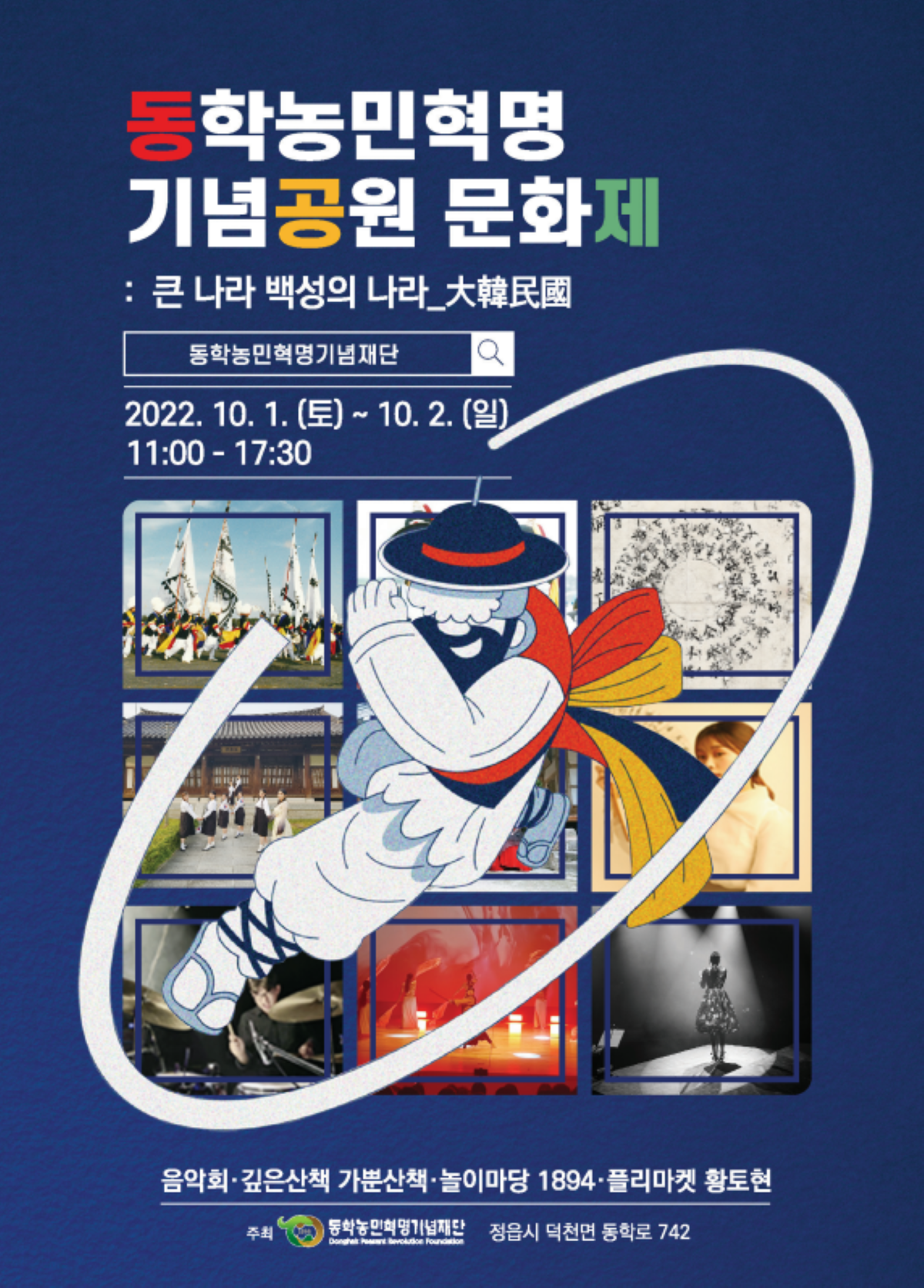 2022년 10월 1일부터 2일, 이틀간 동학농민혁명기념공원(전북, 정읍황토현전적, 사적 제295호)에서‘큰 나라 백성의 나라, 대한민국’이라는 주제로 동학농민혁명기념공원 문화제가 성황리에 열렸다.