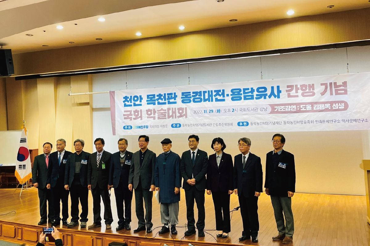 2022년 11월 29일 국회도서관 강당에서 천안 목천판 동경대전·용담유사 간행 기념 학술대회가 열렸다. 이정문 국회의원실이 주최하고, 동학농민혁명기념도서관건립추진위원회가 주관한 학술대회는 지난 2021년 봄 천안에서 발굴된 「동경대전 계미중춘판」을 감정한 결과 진본으로, 국내 최고판본으로 판명된 것을 기념하여 개최되었다. 동학(東學)의 경전인 「동경대전」 중 계미중춘판은 해월 최시형 선생의 지도하에 간행된 것으로 확인되었다. 서울 여의도 국회의사당 내 국회도서관에서 열린 이날 학술대회는 「동학 초창기 역사에 있어서 천안 목천 사람들의 긴장과 헌신」이라는 도올 김용옥 선생의 기조강연으로 시작되었다. 이어서 「생명사상으로서 동학과 새로운 미래」(박맹수, 원광대 총장), 「천안에서 ‘동경대전’ 간행 의미」(성주현, 1923 제노사이드연구소 부소장), 「‘용담유사’ 계미중추판의 간행과 역사적 의미」(박용규, 민족문제연구소 연구위원), 「천안 동학농민혁명의 장소적 의의」(김양식, 청주대) 등이 각각 발표되었다.