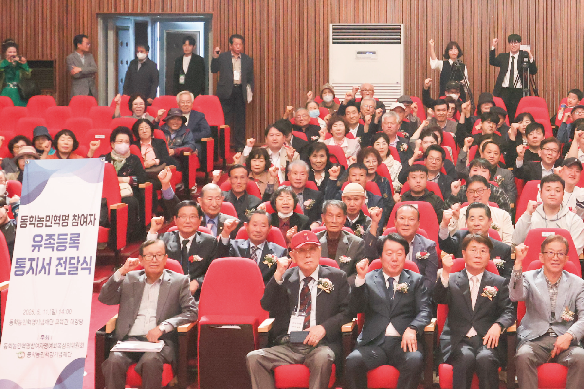 동학농민혁명 국가기념일인 5월 11일, 동학농민혁명기념재단 교육관 대강당에서 ‘동학농민혁명 참여자 유족등록통지서 전달식’이 열렸다. 이번 전달식은 유족들과 함께 동학농민혁명의 정신을 기리고, 그 역사적 가치를 다시금 되새기는 뜻깊은 자리였다.