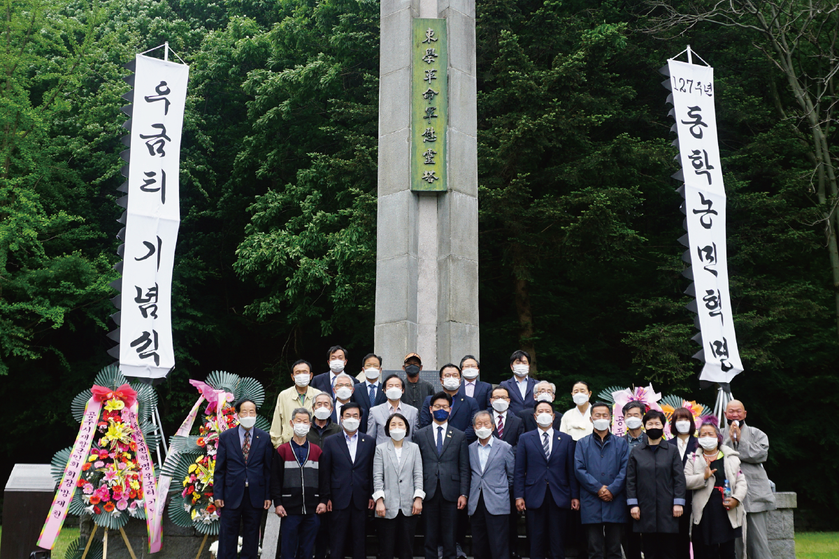 지난 5월 11일 우금티 전적지에서 공주시 후원, (사)동학농민전쟁우금티기념사업회(이사장 신경미) 주최로 제127주년 동학농민혁명 기념식을 열렸다. 이날 기념식은 길놀이 공연을 시작으로, 국민의례, 묵념, 기념사, 기념공연, 동학농민혁명 참여자 독립유공자 서훈을 촉구하는 결의문 낭독, 동학농민혁명의 노래 제창, 헌화 등으로 진행되었다. 기념식 후에는 동학혁명군위령탑 앞 시비(詩碑, 다시 살아나는 우금티)를 제막하였는데, 김정섭 공주시장, 이종운 공주시의회 의장, 박기영 공주시의회 부의장, 진영일 우금티기념사업회 초대 이사장을 비롯하여 동학농민혁명 참여자 유족과 전국의 동학농민혁명 기념사업단체 임원, 정·관계 인사, 천도교와 원불교 관계자 등이 참석하여 갑오선열의 숭고한 정신을 기리고 계승하였다.