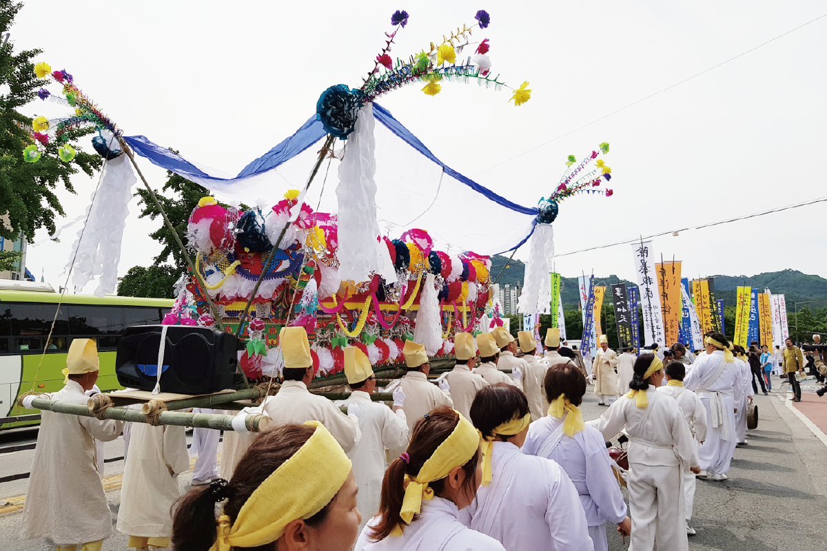 꽃상여 행진 유골 안장을 위해 녹두관으로 가는 길