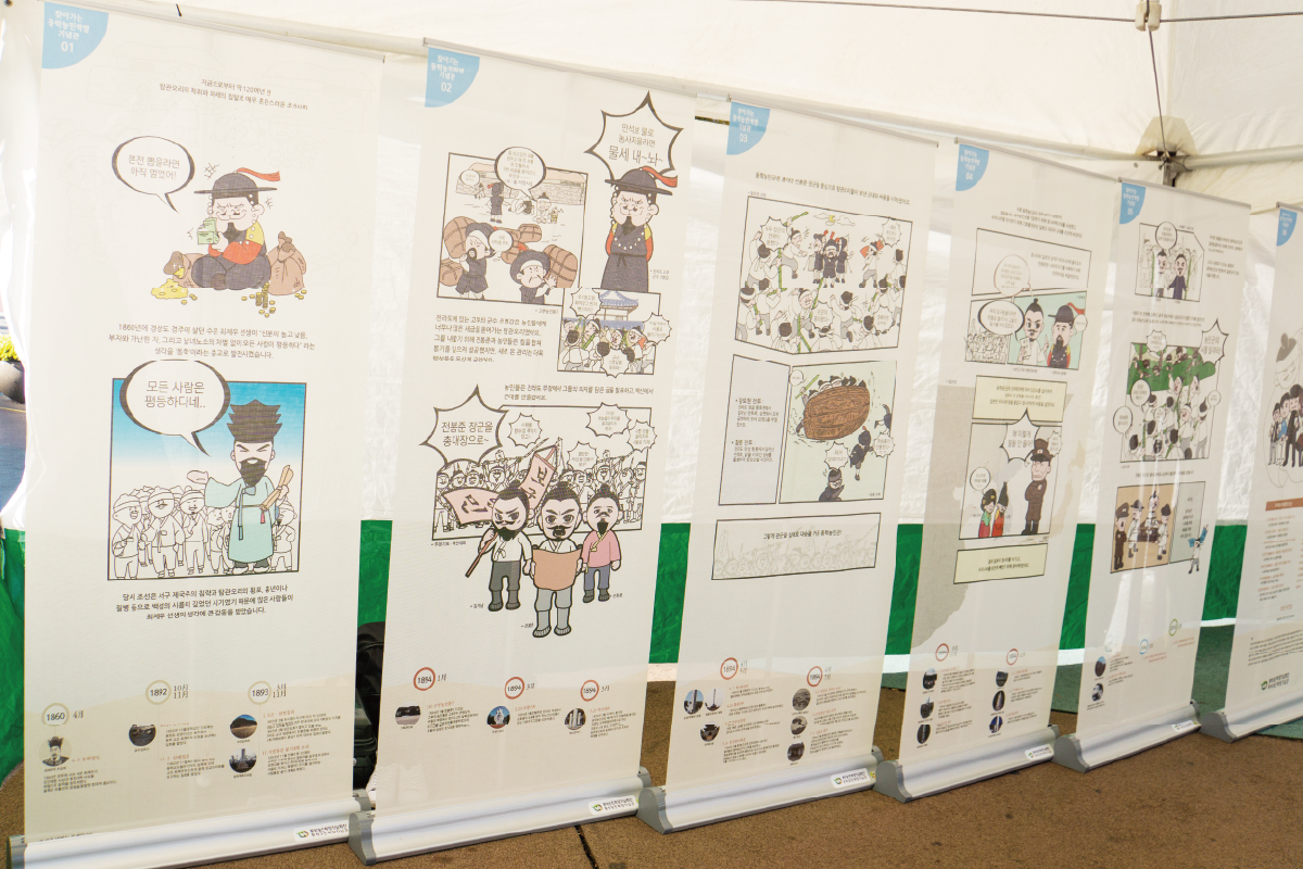 지난 11월 4일 아산시 동학농민혁명 추모문화제가 충남 아산시 온천역 광장에서 펼쳐졌다. 이날 행사를 보다 풍성하게 하기 위하여 재단은 ‘찾아가는 동학농민혁명 기념관’ 전시를 개최하였다. 재단에서 추진하고 있는 ‘찾아가는 기념관’은 동학농민혁명 애국애족 정신을 범국민적으로 알리기 위하여 전국의 교육기관이나 다중이용시설, 지역축제 및 행사장 등을 찾아가는 방문객 중심의 현장 전시이다.
